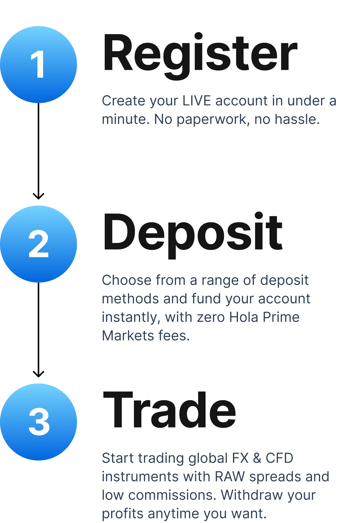 At Hola Prime Markets, we process withdrawals in just 1 hour.